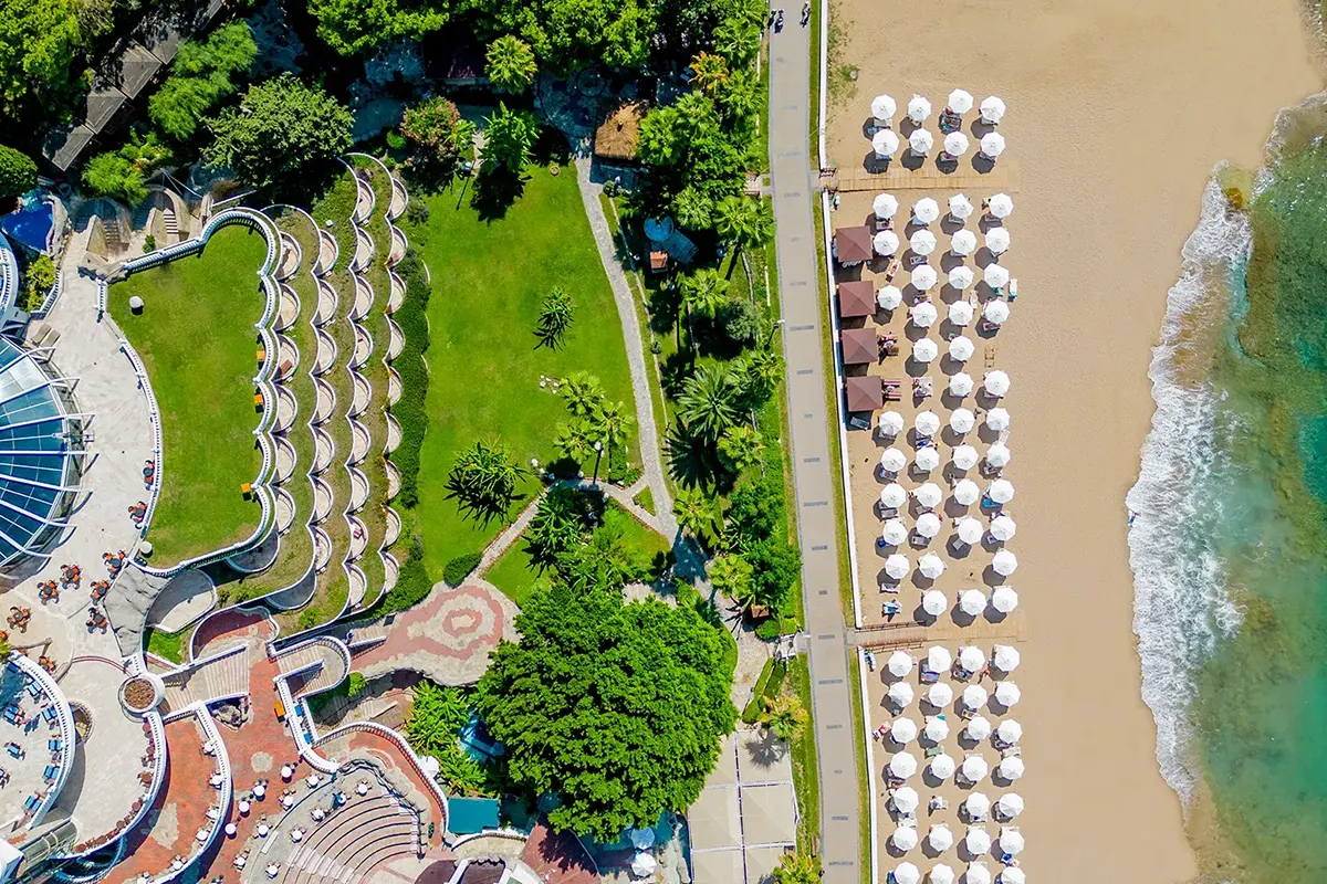 Akdeniz’in en özel noktalarından biri olan Side’de konumlanan Sunrise Queen Resort Hotel, sadece bir tatil değil, başlı başına bir deneyim sunar. 65.000 m²’lik geniş ve özenle tasarlanmış alanı içinde, tarih ile doğanın kusursuz uyumunu hissedeceğiniz bir atmosfer sizi karşılar.